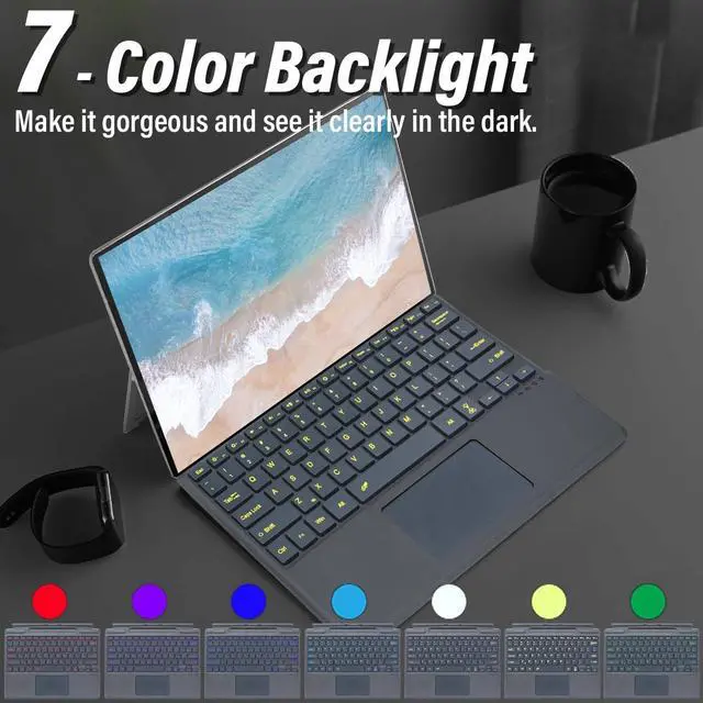 Compatibility ModelExclusively designed for Microsoft Surface Pro 11 (2024), Microsoft Surface Pro 10 (2024), Microsoft Surface Pro 9 (2022), Microsoft Surface Pro 8 (2021) and Microsoft Surface Pro X 13 inch tablet ONLY. It is not compatible with any other model device. Please kindly check before purchase. ^^ 7 Colors Font Backlights3 levels of brightness and 7 vibrant colors make typing fun and easy in the dark. The design of the keys font backlight is more scientific, as it can better protect our eyes in the dark.