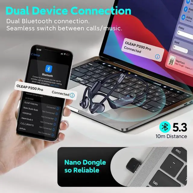 ^^ Effortless Multi-Device Connectivity: With Bluetooth 5.3, our bluetooth headset with microphone delivers a stable connection up to 10 meters with our USB-C dongle. It stays seamlessly staying linked to both your phone and laptop simultaneously. This means you can pause a video on your PC and answer a call from your phone without missing a beat, keeping you focused and productive all day long. ^^