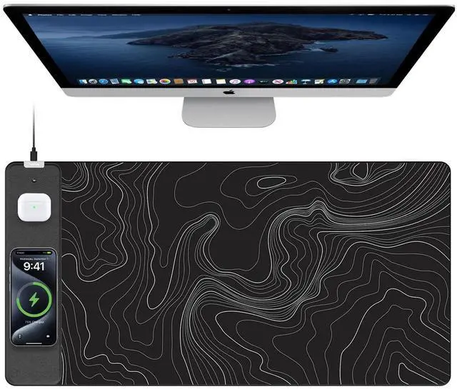 XXL Large 3-IN-1 Wireless Charging Mouse Pad for Desk TopMade XXL large mousepad is 31.5" x 15.75", the extra large usable area covers your desk keyboard, mouse, and other items while gaming or working, and combines 3 functions of phone charging, AirPods charging, and mouse pad in one, allowing you to charge your iPhone and AirPods while using the gaming mousepad without the need for additional cables interfering with your desk, keeping your desk neat and tidy ^^ Max 15W Fast Qi Wireless Charging This wireless charging mousepad provides up to 15W fast charging for Samsung Galaxy S23/S22/S21/S20/S10/S9/S8/Note 9/8, iPhone 17/16/15/14/13/12/11/X/8 series, Airpods Pro 2nd/Pro/4rd/3rd/2rd (only for wireless charging case) and other Qi-enabled devices.