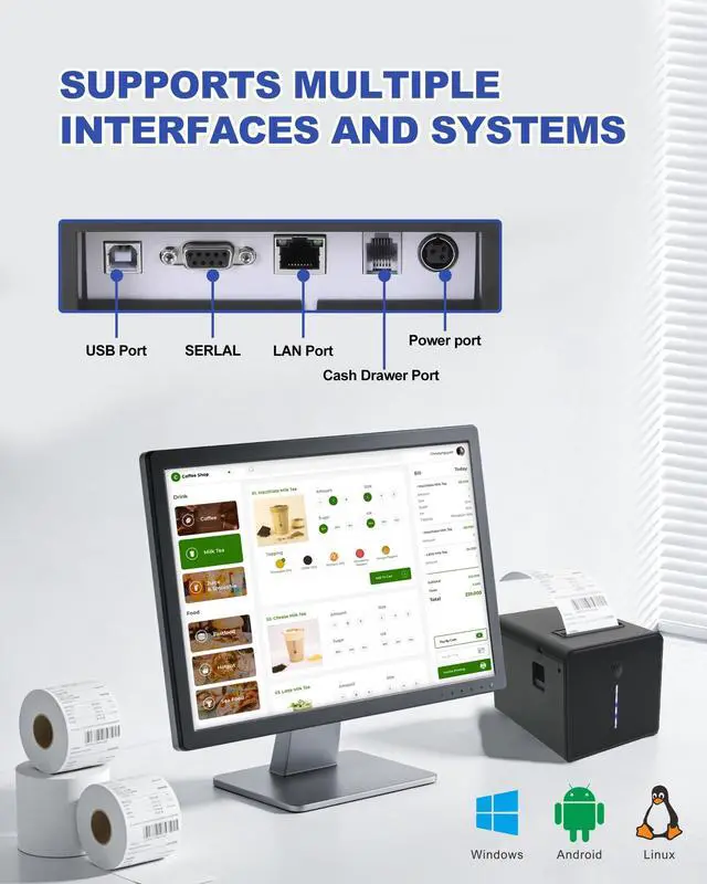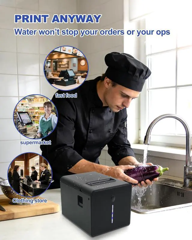 Mind: After accidental water exposure, simply wipe the receipt printer interior dry to resume printing without risk of short-circuit damage. Avoid order delays, efficiency drops, and duplicate purchase costs due to printer failure, ensuring business continuity and cost control ^^