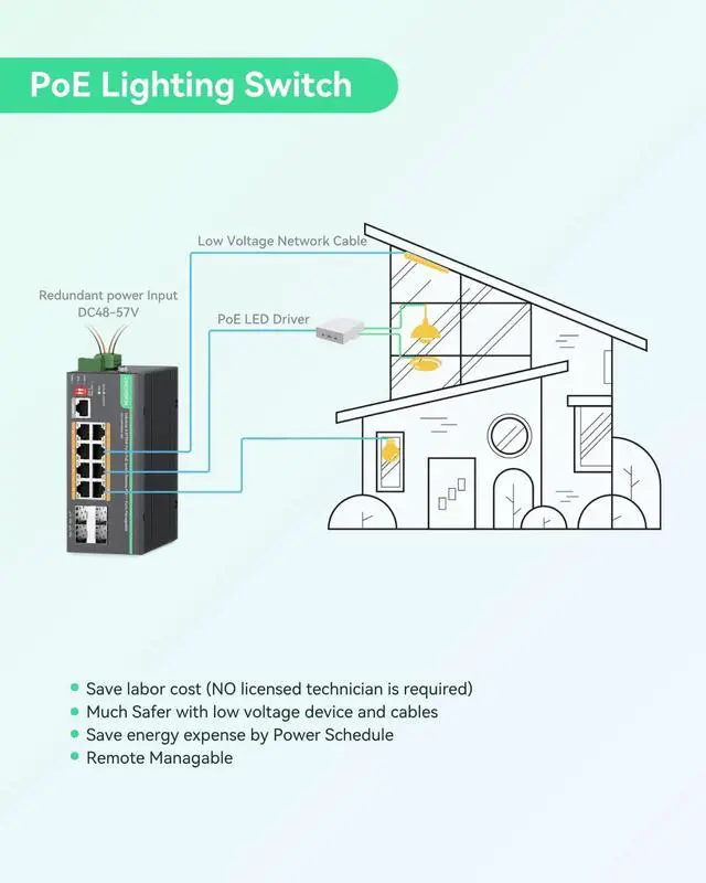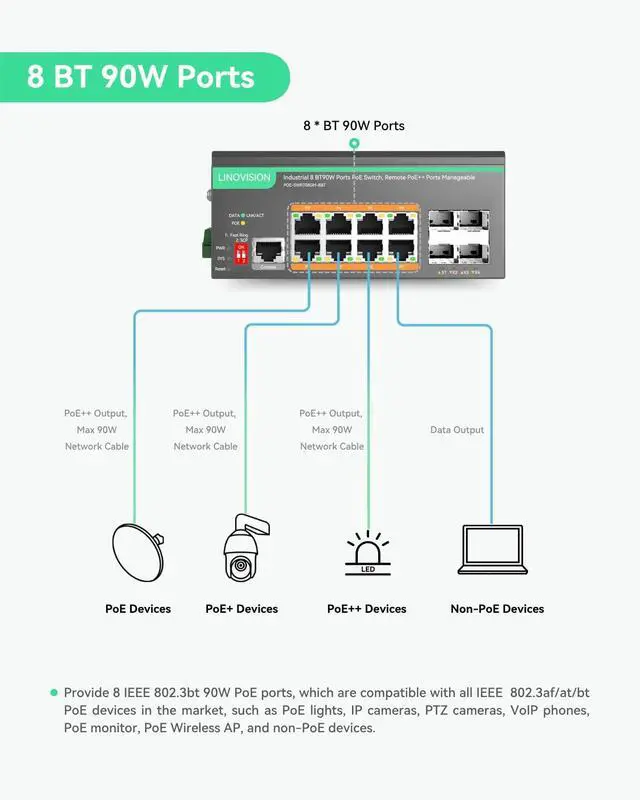 ^^ Industrial Design - IP40 rated with aluminum housing and fanless design. Support DIN-rail or wall mounted installation. Wide working temperature -40 to +167-40 to 75). ^^ Application - Designed for industrial and harsh environments. Perfect for Solar CCTV Trailer, PoE lighting, IP cameras, PTZ cameras, Access Point, VoIP phone, PoE monitor, etc.