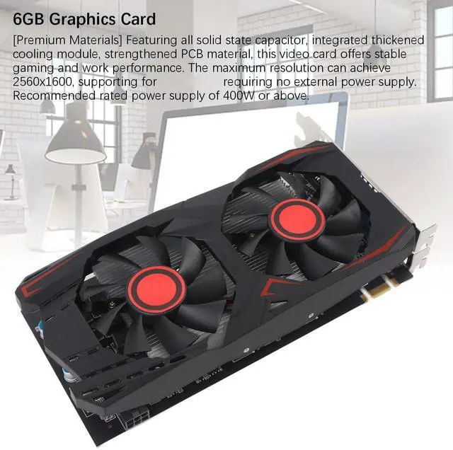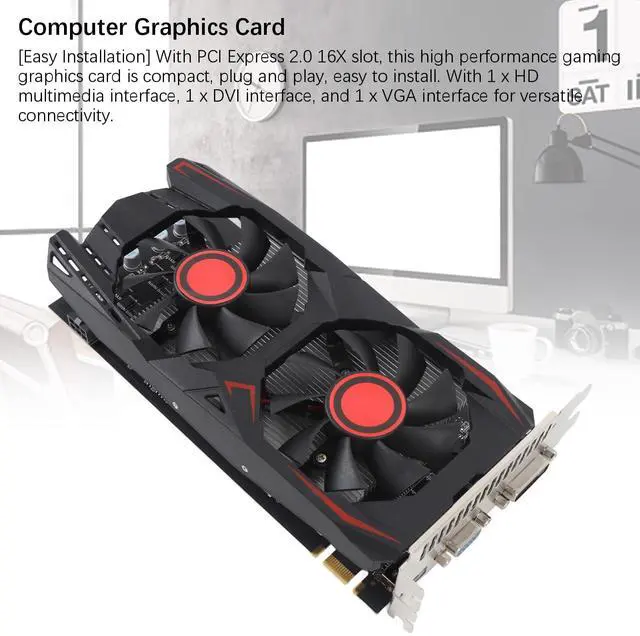 1. [6GB GDDR5 Memory] Enhance your gaming experience with this 6GB GDDR5 graphics card, featuring a core frequency of 783MHz and memory frequency of 1566MHz for smoothly performance. 2. [Efficient Quiet Cooling] The graphics card is equipped with 6GB video memory and independent cooling fan, providing low working temperature and high efficiency, with low noise. 3. [Easy Installation] With PCI Express 2.0 16X slot, this high performance gaming graphics card is compact, plug and play, easy to install. With 1 x HD multimedia interface, 1 x DVI interface, and 1 x VGA interface for versatile connectivity.