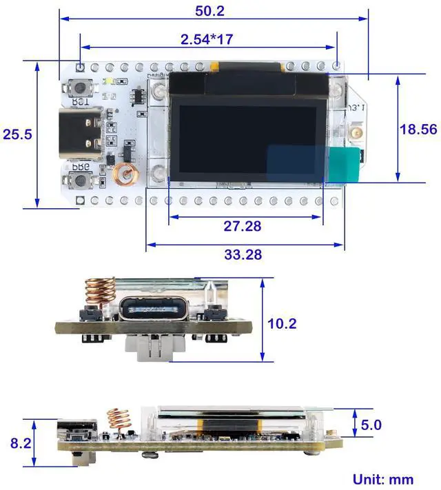 USB Socket: Type-C ^^ When you use lora32 board, you need to use 2pcs together. One is used for receiving and another for sending ^^