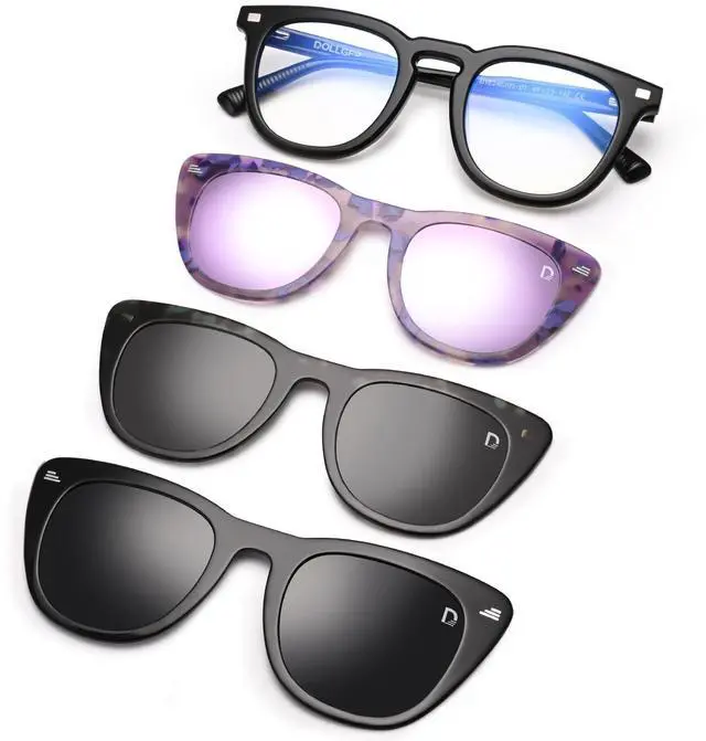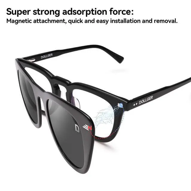 Dollger Magnetic anti-blue light glasses, multiple pairs of magnetic sun lenses, anti-glare computer glasses for men and women