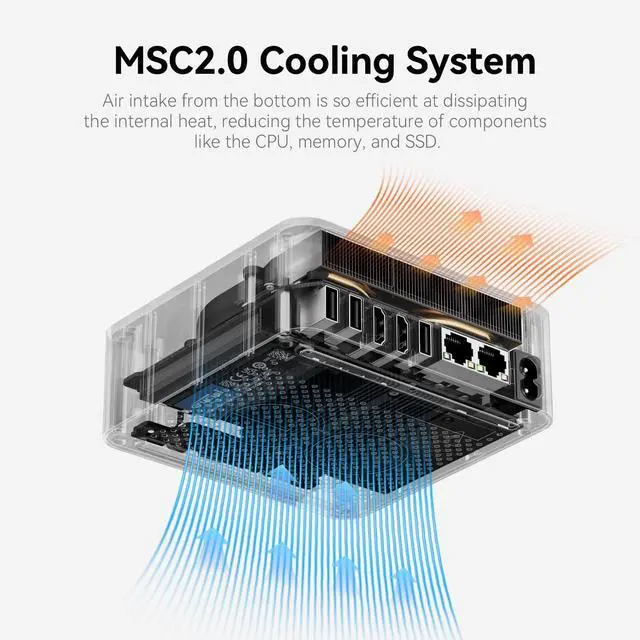 Heat pipe, silent fan and heat fins quickly push the heat out of the AI PC, avoiding CPU overheating and throttling, offering efficient cooling for the SSD and RAM. ^^ Multiple Interfaces & PSUBeelink Mini PC has a unique interface designed with 3 x USB 3 (10Gbps), 1 x USB 2.0 480Mbps, 2 x HDMI (Max 4K 60Hz), 1 x AC Jack, 2 x RJ45 1000M, 1 x 3.5 mm Audio Jack*1(Two-in-one). Mini PC wears a power LED, power button, reset button. The EQR7 Mini PC has a built-in 85W power supply, simplify your space with less cableclutter and fewer power strips ^^ Dual Display & AMD Radeon 680MBeelink PC is equipped with HDMI x 2.
