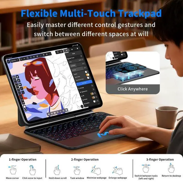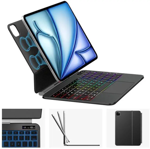 FULL-AREA MULTI-TOUCH TRACKPAD: Work faster and smarter using a smooth, responsive trackpad that supports multi-gesture navigation. Effortlessly edit documents, browse, and multitask with desktop-style precision ^^ PREMIUM METAL DESIGN WITH ULTRA-LIGHT FEEL: Crafted from aerospace-grade aluminum alloy and premium PU material, this ipad air keyboard case blends durability with a minimalist, high-end appearance. The 1.3 lb lightweight build is easy to carry while staying resistant to scratches, fingerprints, and daily wear ^^