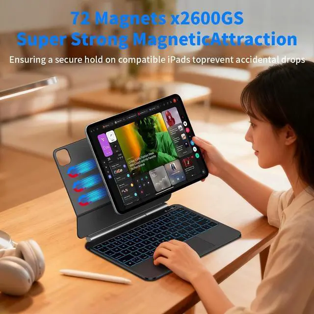 MAGNETIC FLOATING LAPTOP TRANSFORMATION: Switch from tablet to laptop in seconds with a strong magnetic design and floating cantilever stand. Adjust the angle freely for typing, drawing, or watchingperfect for productivity, study, travel or hybrid work environments ^^