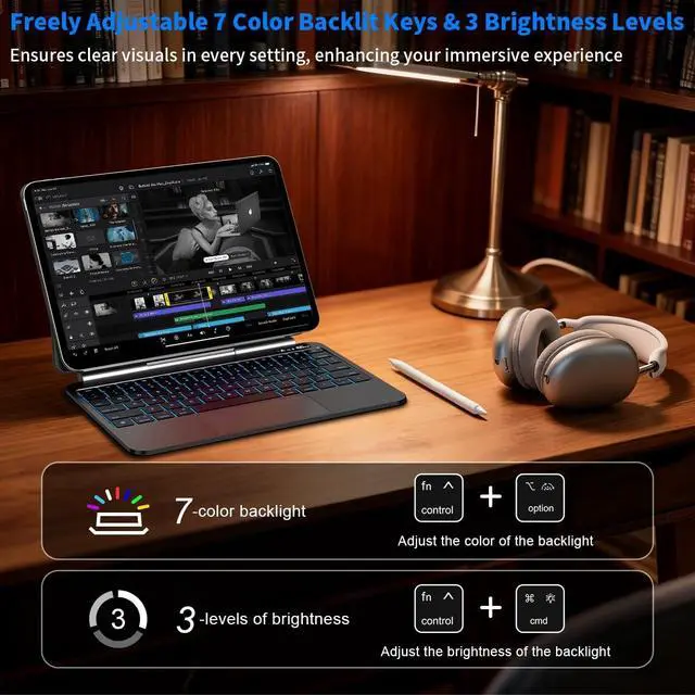 SMART SLEEP & STABLE CONNECTION: The ipad pro 11 inch case with keyboard automatically enters sleep mode after 10 minutes of inactivity and instantly wakes at the tap of a key. Bluetooth 5.2 ensures fast pairing and a stable, low-latency connection every time ^^