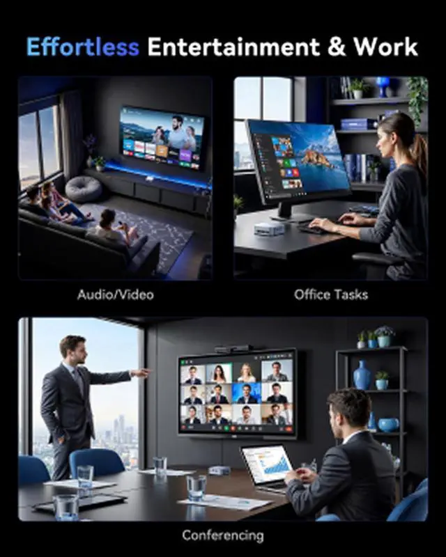 SMALL SIZE, BIG FUN - Micro pc is only 3.9*3.9*1.3IN in size, which is very compact, you can easily put it anywhere to save space, and it is powered by a 2300rpm high-speed silent axial fan, which makes no noise, allowing you to work or play quietly. You can use VESA to install the small pc behind your computer monitor and turn the monitor into a p