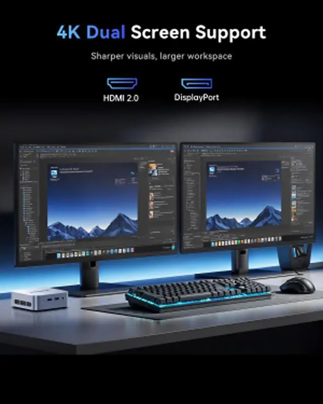 HUGE STORAGE - 16GB RAM and 512GB SSD ensure seamless multitasking in a mini computer, quick launch of applications and sufficient space for files, videos or games. If you want more storage space, you can purchase an additional M.2 NVMe or SATA SSD with a larger storage capacity to replace our original 512GB SSD, which supports a maximum hard disk capacity of 2TB.