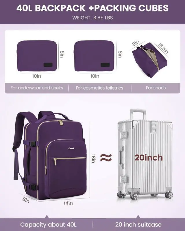 LOVEVOOK 40L Travel Backpack for Women Men,Waterproof Airline Approved Carry On Luggage Travel Essentials,TSA Carry On Backpack Personal Item Travel Bag Suitcase Weekender Traveling with Packing Cubes