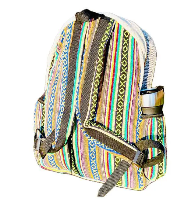 DescriptionHimalayan Craft Beautifully designed Medium Hemp Bag backpack is made from natural hemp fiber and natural heavy-duty cotton that are well known for their strength and durability. Inner lining has soft cotton material to make this bag sturdy and extra durable. This multi-color stylish backpack has pockets of different sizes, useful for all of your different sized goods. It has enough space to carry all your personal belongings including Textbooks, Laptop and other necessities. This backpack gets softer to touch as you use it more, yet it retains its durability. We use pure Hemp and Cotton.