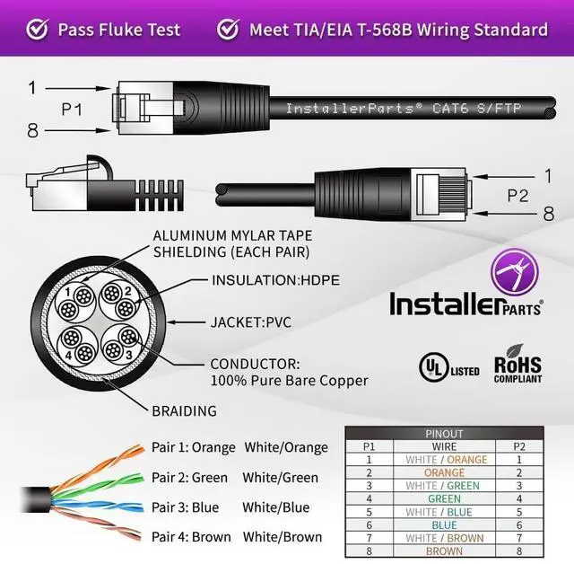 Quality 100% Copper: InstallerParts patch cables are made of 100% bare copper wire with 50 micron gold plated RJ45 plugs. Our cables use high quality, long-lasting materials and feature a highly durable design at an affordable price.