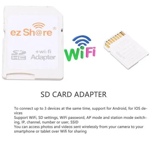TF Card to SD Card Adapter, Camera Memory Card Reader Adapter, WiFi SD Adapter for Camera Photos to Mobile Tablets Wirelessly, for JPG, PNG, BMP for MP4, AVI, MOV.