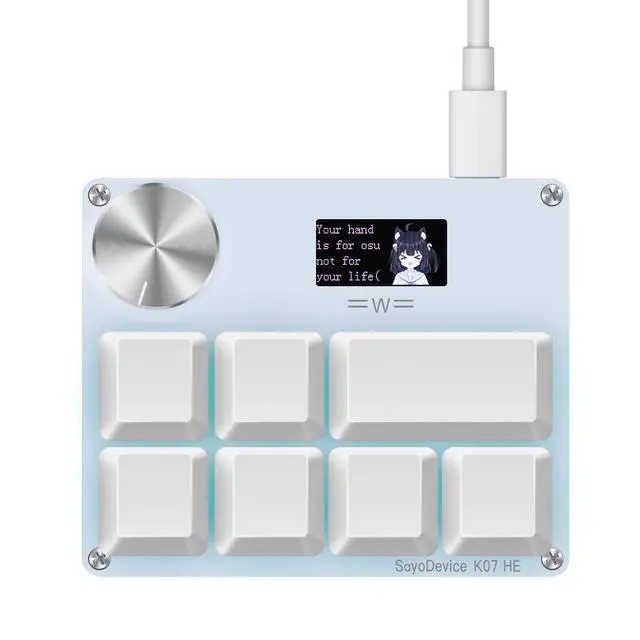 • SayoDevice K07-HE KeyboardThis keyboard with 7 Hall magnetic linear switches, 1 knob, 1 screen! TYPE-C,USB 2.0 high-speed 8000HZ.