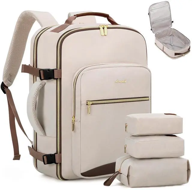 LOVEVOOK Travel Backpack for Women & Men 40L,Airline Approved Carry On Backpack Travel Essentials,TSA Carry on Luggage,Waterproof Personal Item Travel Bag,Suitcase with 3 Packing Cubes,Primary-Coffee