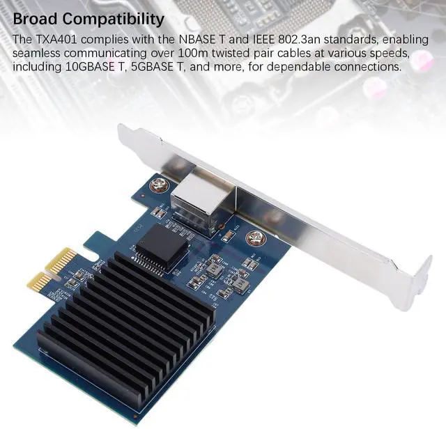 ^^ Broad Compatibility: The TXA401 complies with the NBASE T and IEEE 802.3 an standards, enabling seamless communicating over 100m twisted pair cables at various speeds, including 10GBASE T, 5GBASE T, and more, for dependable connections.