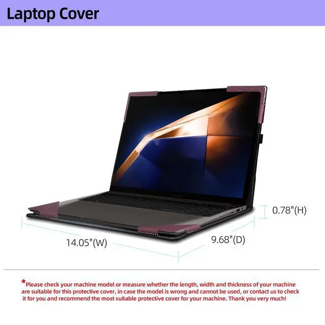 The protective cover is only suitable for Samsung Galaxy Book 3 Pro^^Book3 Pro 360^^Book3 Ultra ^^Galaxy Book 4 Pro^^Book 4 Pro 360 2-in-1^^Book 4 Uitra^^16 inch[ Not suitable for other sizes]PU Leather Detachable Cover protects all corners. The size of the protective sleeve is: 14.05X 9.68X 0.78 inch. The computer should be close to this size and the acceptable error is about 1 inch. Otherwise, the sleeve may not fit in and be too large. Please check your model for purchase. It is not suitable for other 16-inch machines. Don't mind buying at will. ^^ The case is made of high-quality PU leather, which is beautiful in appearance and delicate in hand; the soft microfiber fleece inner layer can better protect the laptop. ^^ Simple installation and disassembly, anti-scratch protective cover, providing 360-degree protection for the machine ^^ Anti-life splash water wear-resistant exterior and shock-proof interior protect your device from dust, shocks, bumps, scratches, scratches and spills. ^^ Various colors are available. Suitable for various life and work scenarios, such as video conferences, watching movies, business office...