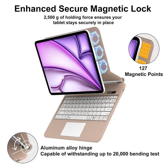 COMPATIBILTTY: This premium slim keyboard case is only compatible with iPad Air 13 M3 2025 (A3268, A3269, A3271), iPad Air 13 M2 2024 (A2898, A2899, A2900), iPad Pro 12.9 inch (6th/5th/4th/3rd gen), models include 2022 12.9 inch iPad Pro 6th Generation (A2436/A2437/2764/A2766); 2021 12.9 inch Pro 5th Generation (A2378, A2379, A2461, A2462); 2020 12.9 inch Pro 4th Generation (A2229, A2069, A2232, A2233); 2018 12.9 inch Pro 3rd Generation (A1876, A2014, A1895, A1983) ^^ Multi-Touch Trackpad, Multi-Functional KeysThis 13 inch magic keyboard has a built-in high-precision touchpad that supports multi-touch. You can easily switch applications, slip, and other operations through touch gestures, bringing you a smooth fingertip control experience. In addition, the keyboard also has a row of shortcut keys, click Fn and hot keys to switch songs, adjust screen brightness and volume, etc. The hot keys helps you quickly use various commonly used functions, make daily use more convenient ^^ Magnetic Floating Stand, Multi-Angle AdjustableThis magic style keyboard case built-in strong magnets, which can adsorb your iPad firmly on the shell.