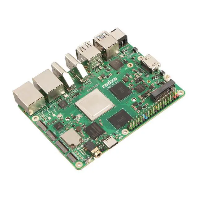 Experience powerful computing capabilities with the Radxa ROCK 5T single board computer, featuring the advanced RK3588 8-core CPU and cutting-edge LPDDR5 RAM. This versatile board delivers impressive performance with its 6 TOPs NPU and supports stunning 8K HDMI output for crystal-clear visual experiences. The dual M. 2 M Key connectors provide excellent expansion possibilities, while the Penta SATA Hat add-on enables extensive storage options with up to 100TB capacity. Measuring just 3.5 x 3.5 x 0.5 inches, this compact powerhouse is compatible with Raspberry Pi 5, making it perfect for both enthusiasts and professionals.