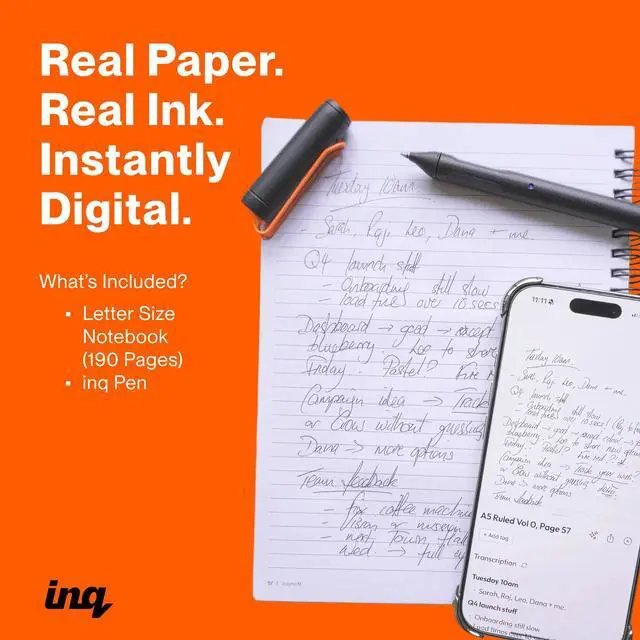 ^^ SYNC NOTES ANYWHERE: Sync your notes to the free inq App for iPhone and Android and access them on the inq Web App for laptop and desktop. Great for meetings, study notes and projects.