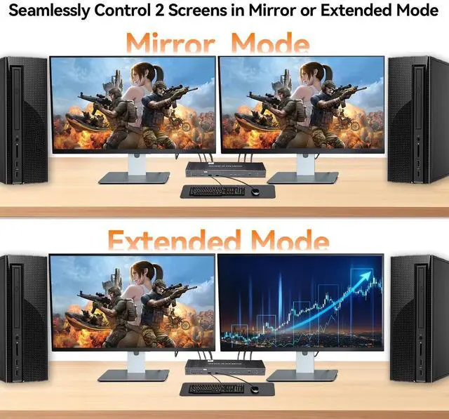 Dual Display Port KVM Switch: This Display Port KVM switcher allows you to control 2 monitors 2 computers with just one set keyboard mouse. Perfect for users who need expansive screen real estate to enhance productivity and workflow efficiency.