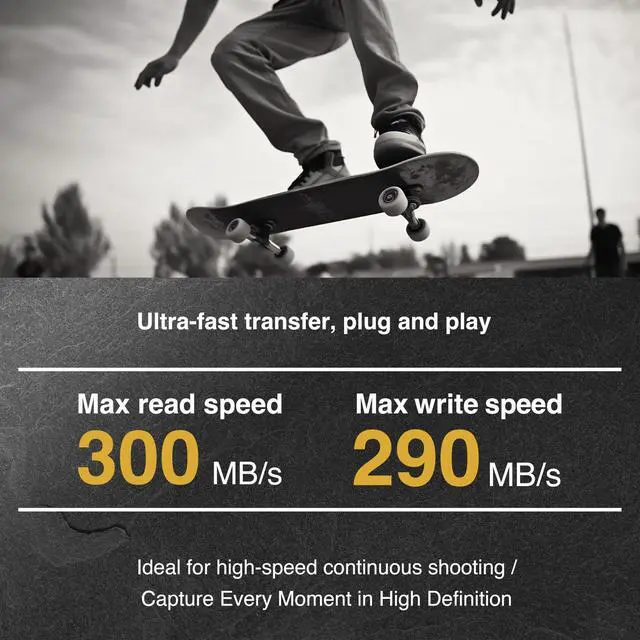 Supports UHS-II Mode FD156/HD312, achieving a maximum read speed of 300MB/s for high-speed data transfer to PCs and other devices, and a maximum write speed of 290MB/s for high-resolution continuous shooting. Compatible with U3/V90, ideal for shooting 4K, Full HD, and 8K videos. Supports UHS-I Mode SDR104, with a maximum read speed of 95MB/s and a maximum write speed of 90MB/s. Adopts the "pSLC" method, ideal for frequent rewriting. Utilizes the blank space on the seal surface for assisting in managing multiple cards. High-quality memory cards with 100% inspection conducted during the manufacturing process.