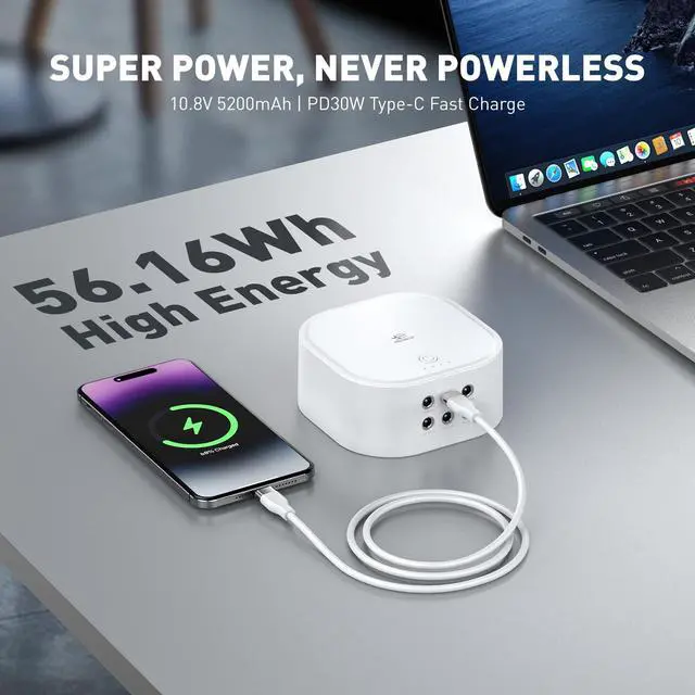 56Wh High-Energy:Built with a 56Wh (10.8V 5200mAh) lithium battery designed for stable DC output.Compared with standard 3.7V-rated power banks, the higher system voltage delivers more efficient and consistent power for network equipment.
