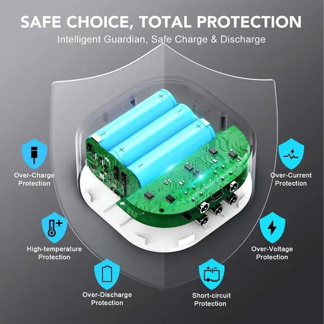 Intelligent Circuit Protection:Integrated protection against over-charge, over-discharge, over-current, over-voltage, short-circuit and overheating.Ensures stable output during long standby periods and pre