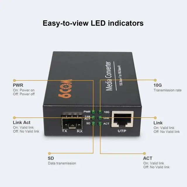 High-Speed 10Gigabit PortThe 10Gigabit SFP+ slot can only support 10G SFP+ transceivers like 10GBase-SR/LR/BIDI, the 10Gigabit RJ45 port is auto-negotiation, can autoadapt to 1000M/ 2.5G /5G/10GBase-T connection ^^ Easy-to-view LED IndicatorsEquipped with LED indicators, indicates diagnostic & DIP-switch configurations status, easy to use ^^ Standard Dimension 0.98 ''x 2.7 ''x 3.7 '' (25x70x95mm), Supporting Auto-MDI/MDIX, Support 1U 12 Slots Chassis & Stand-alone Use ^^ Ventilation Hole DesignWith ventilation hole design, the heat dissipation is faster and the operation is more stable, the metal casing is corrosion and wear-resistant, lightweight and durable ^^ What You Get1x 10Gigabit SFP+ to RJ45 Media Converter, 1x Adapter, 1x User Manual.