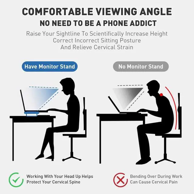 ^^ Versatile Multi-Device Platform Designed to accommodate a wide range of your tech devices. The robust platform can easily hold two monitors, a monitor and a laptop, a PC tower, a large printer, or even a mid-size TV (up to 47 inches). It's the all-in-one organizational solution for your workspace. ^^ Non-Slip Pads & Superior Stability Equipped with thick, high-friction non-slip pads on the top surface and rubber feet on the bottom. These pads securely grip your monitors and devices to prevent sliding or scratches, while the bottom feet protect your desktop from scuffs and ensure the stand stays firmly in place.