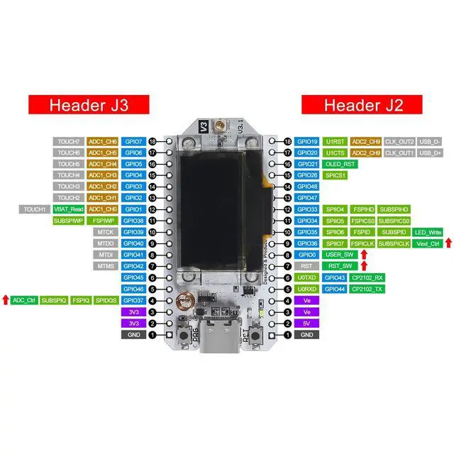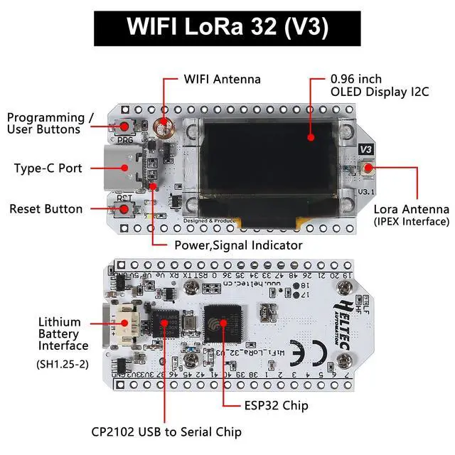 Power lora v3 board via 3.7V lithium battery, 3.3V / 5V pin, or on-board type C 5V. To make it work better, type C 5V power is recommended. ^^ 915MHz ESP32 LoRa OLED Board V3 SX1262 Type-C + LoRa V3 Case + 915MHz Antenna for Arduino