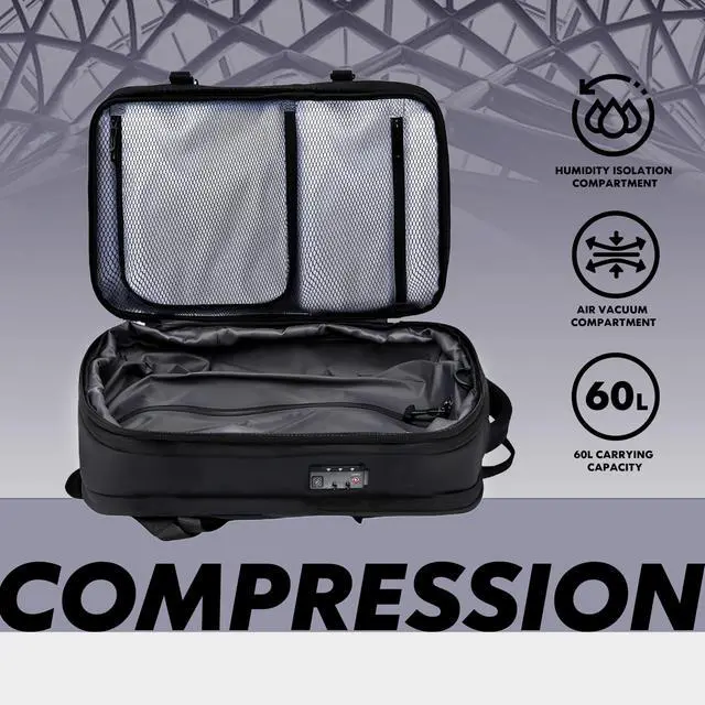 Maximize Packing Capacity: Experience revolutionary space-saving technology with our VACUUM COMPRESSION BACKPACK. Utilizing vacuum compression, this travel compression backpack for travel optimizes your packing efficiency, helping you avoid expensive baggage fees during air travel while ensuring you have enough room for all your essentials. This vacuum seal backpack is your ultimate vacuum travel backpack solution.