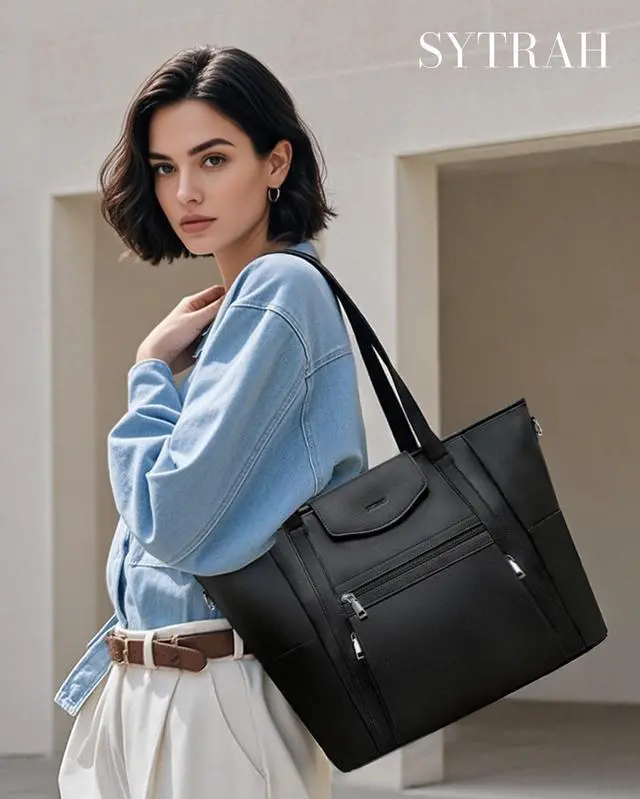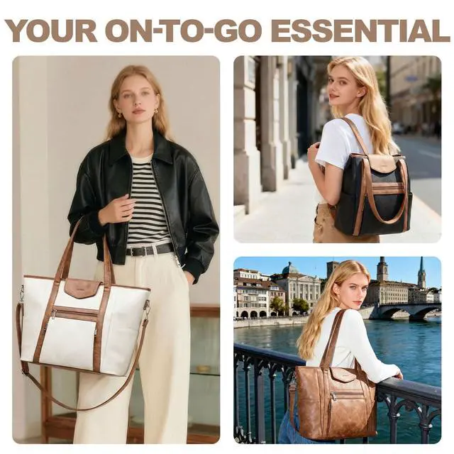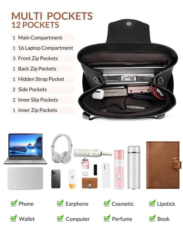 As a Laptop Backpack or a Laptop Tote Bag- This designer laptop bag is a stylish and practical laptop bag for women. The hidden back pack strap is designed to convert the laptop bag into a laptop backpack, and the detachable shoulder strap can be converted into a shoulder handbag. The various carrying methods such as handbag, back pack, shoulder purse and tote bag are suitable for everyday use ^^ Multi-pocket & Large-capacity, Easy Storage for Everything- This womens laptop bag has 12 pockets, including 1 main compartment, 1 built-in laptop pocket (which can hold a laptop no larger than 16.5 inches, effectively protecting the device from collision), 4 external zip pockets, 1 hidden back strap pocket, 2 side pockets and 3 inner pockets.