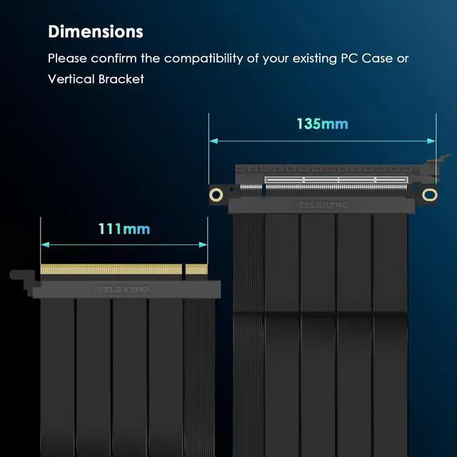 Includes multi-hole mounting bracket for secure installation in small form factor (SFF) cases, open-frame builds, or high-end Threadripper workstations. Please power off your system before installation. Hot-plug is not supported. ^^ Installation & Length Selection NoteThe actual routing distance often exceeds straight-line measurement. Before purchase, use a flexible measuring tool (such as a string) to follow the cable routing path from the motherboard PCIe slot to the GPU connector, and select the next closest longer available length for proper fit and clean cable management. For any questions before or during installation, feel free to contact our support team.