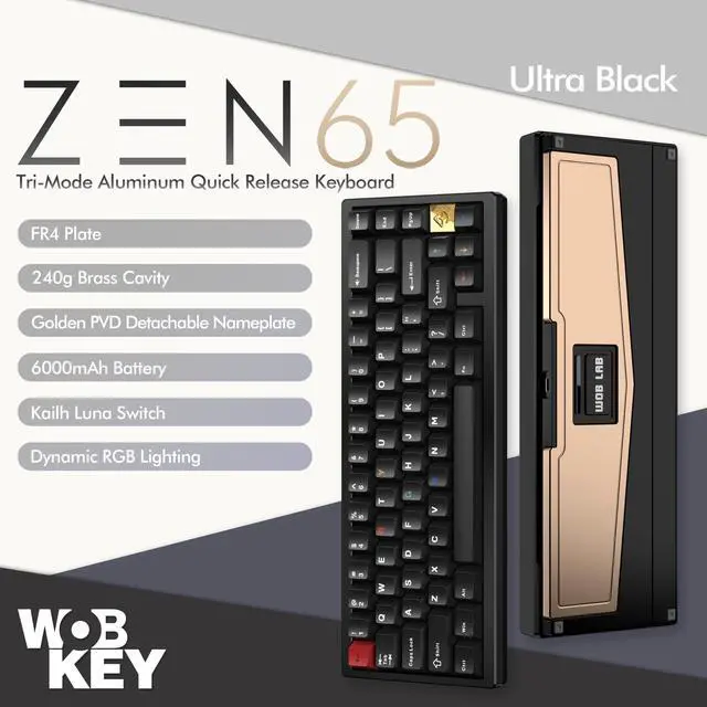 Premium Keycaps: 19mm ultra-low front height helps reduce wrist strain. Comes with double-shot PBT keycaps and a detachable PVD nameplate for added style and comfort.