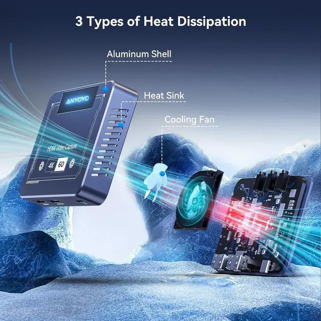 ^^ Multiple cooling: built-in cooling fan, the appearance of the aluminum alloy shell with a cooling slot 96 hours of uninterrupted and stable live broadcasts, long-time use without overheating, long-lasting stable live broadcasts without delay.