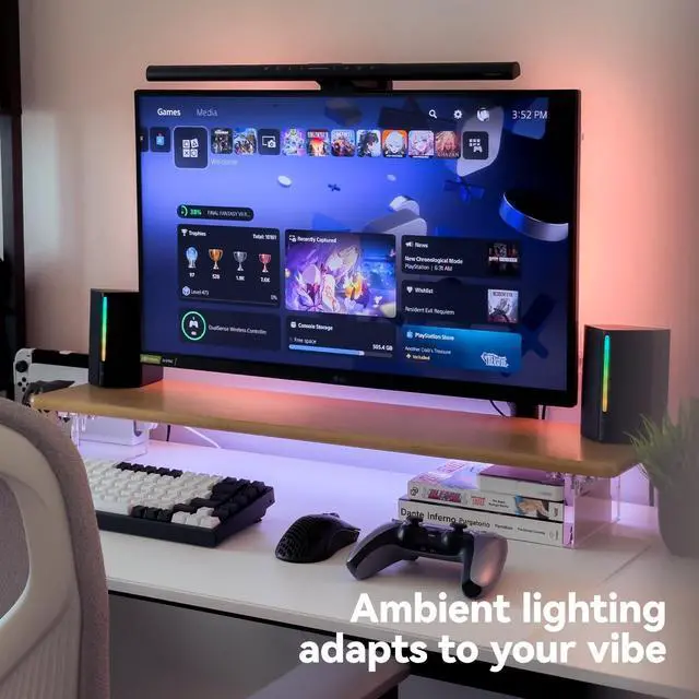 Acrylic Design: The mix of natural bamboo and clear acrylic creates a clean, floating look that adds elegance and visual lightness to any workspace. ^^ Built-in LED Light Strip Integrated ambient lighting adds a modern touch to your setup, perfect for creating a cozy workspace, immersive gaming station, or stylish desk aesthetic. ^^ Customizable RGB Lighting 7 solid colors, 3 dynamic modes (jump, gradient, breathing), 5 brightness levels, and adjustable speed for the perfect ambiance.