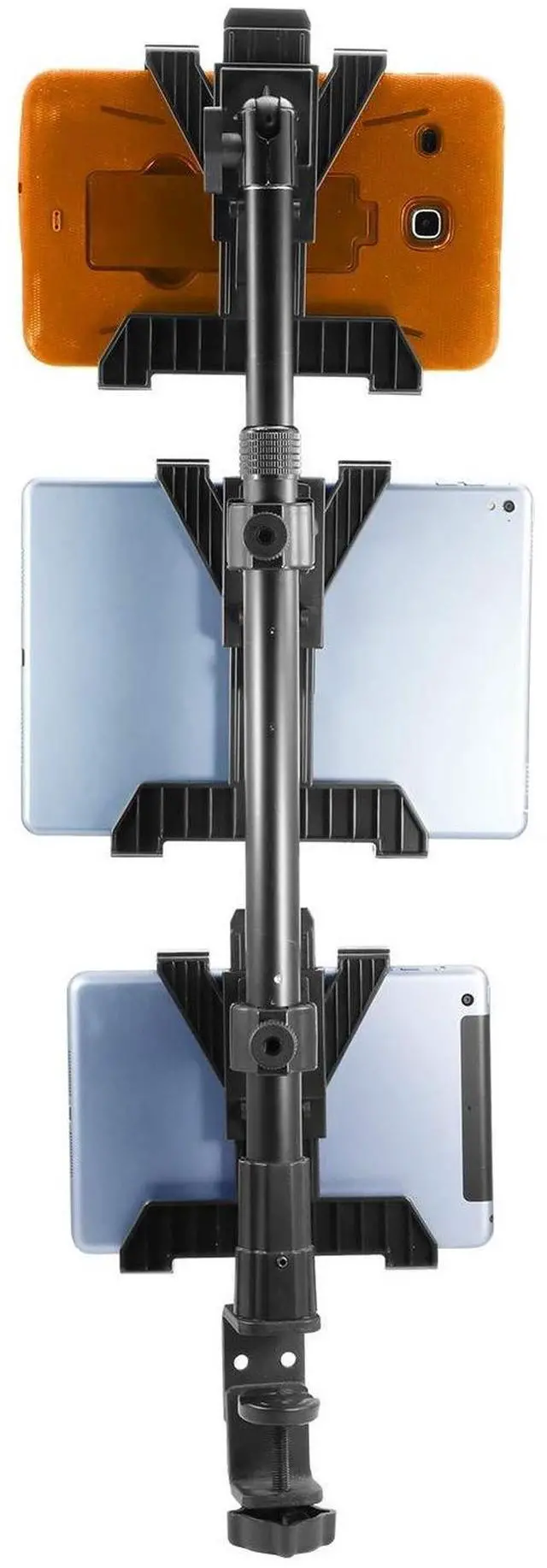 HEAVY-DUTY MULTI-TABLET COUNTER & CLAMP MOUNT The Tablet Tower Point of Purchase is a versatile multi-tablet mount designed to securely hold up to three tablets. This mount is ideal for restaurants and busy workspaces needing to clear counter space while managing multiple delivery and order applications efficiently. ^^ DUAL MOUNTING OPTIONS Includes a clamp mount that fits flat surfaces up to 2.5 wide and a drill base mount for permanent installation on countertops, offering flexible mounting solutions for various setups. The drill base is an optional addition for more permanent mounting needs. ^^ STURDY & SECURE HOLD Each tablet holder features four points of contact to keep devices firmly in place while running delivery and order management applications such as DoorDash, Uber Eats, Postmates, Yelp, and more.