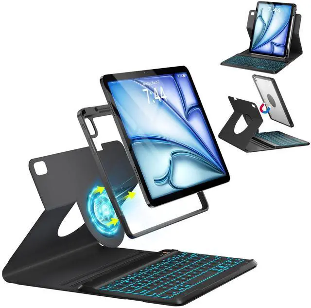 It will wake up and connect again when pressing any key ^^ Innovative Detachable & Magnetic CaseThe upgraded case of the iPad Air 5th - generation keyboard case is detachable and rotatable. It has strong magnetism and can be attached to iron - based flat surfaces such as refrigerators after being detached. For example, you can attach your iPad to the refrigerator, allowing you to conveniently and safely view recipes while cooking. Or you can rotate the iPad to portrait mode to make video calls with your family with ease ^^ 7 - color Backlit Bluetooth KeyboardThis ipad Pro 11 case with keyboard designed, choose from a variety of 7 colors to suit your mood and style, illuminated typing is more fun and easy.