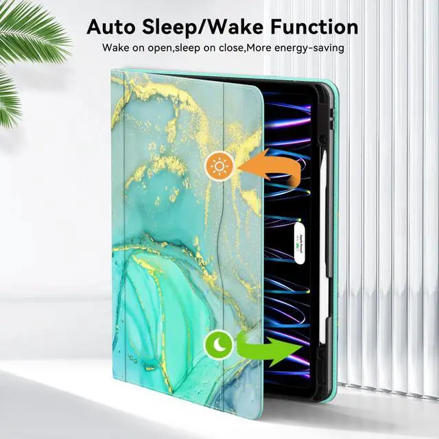 Auto Wake & Sleep: Zonefoker cover for ipad pro 12.9 supports smart auto wake/ sleep function; the external elastic closing band adds magnetic closure to keep the case closed and provides better protection for the iPad ^^ Special