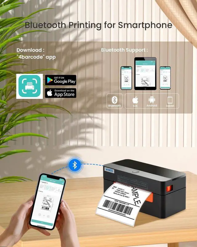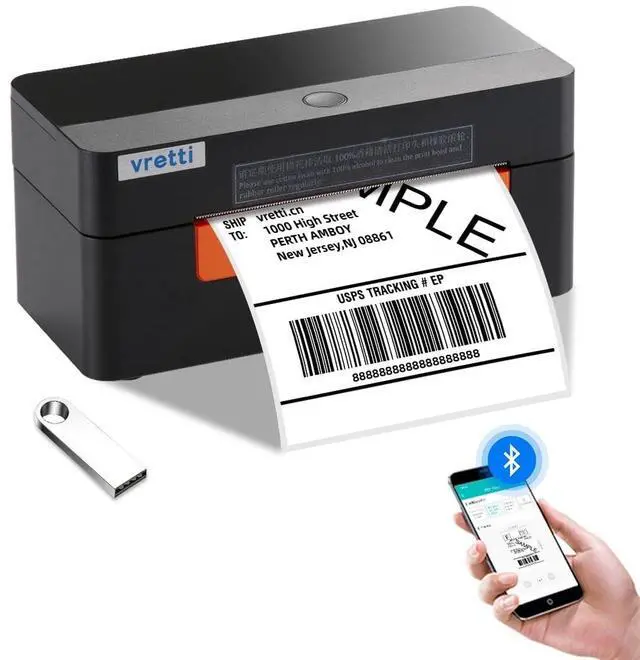 Wireless for Bluetooth connectionThe Shipping Label printer 46 is wireless printing, it can connect the printer to Bluetooth through your smartphone and computer. Vretti Bluetooth shipping label printer will be very convenient for you, You can take it to your home and office without any wire. ^^ Multi-functional applicationsOur thermal label printer have a powerful App called"Ezlabel", you can download it through you phone, The App contain multiple template. This label printer can help you quicly to create your own label template for printing. ^^ Clear and Clean PrintingThe label printer for small business prints clearly, 203 DPI high printing quality, Clean printing,, No ink need, No toner need, 152mm/s printing speed, This barcode label printer is suitable for small businesses to print barcodes, Logistics bills, and more labels.