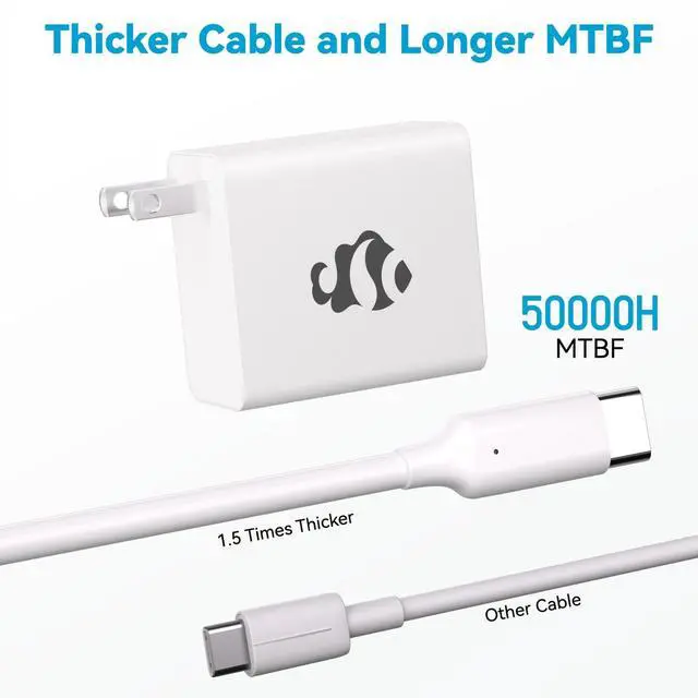 Reliability & Durability: The MacBook charger features reinforced internal wiring, with a cable diameter 1.5 times thicker than standard cables. With a 50, 000-hour Mean Time Between Failures (MTBF), its designed for long-lasting performance, ensuring reliability and durability. The robust design withstands frequent use, providing long-term value and peace of mind.