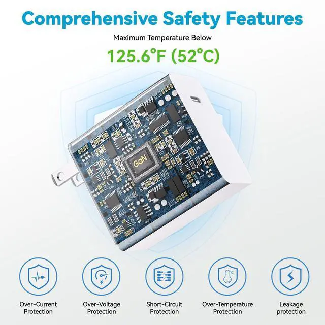 ^^ Comprehensive Safety Features: Your safety is our top priority. The MacBook Pro charger includes over-current, over-voltage, short circuit, temperature control, and leakage protection. During operation, the charger's temperature is kept below 125.6F (52C), ensuring it stays cool under normal use and prevents overheating, keeping both your devices and the charger safe. ^^ Compact &