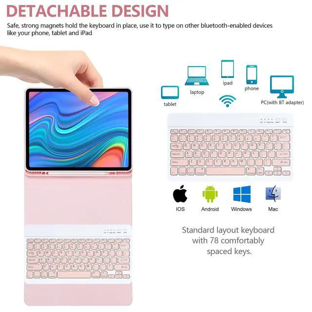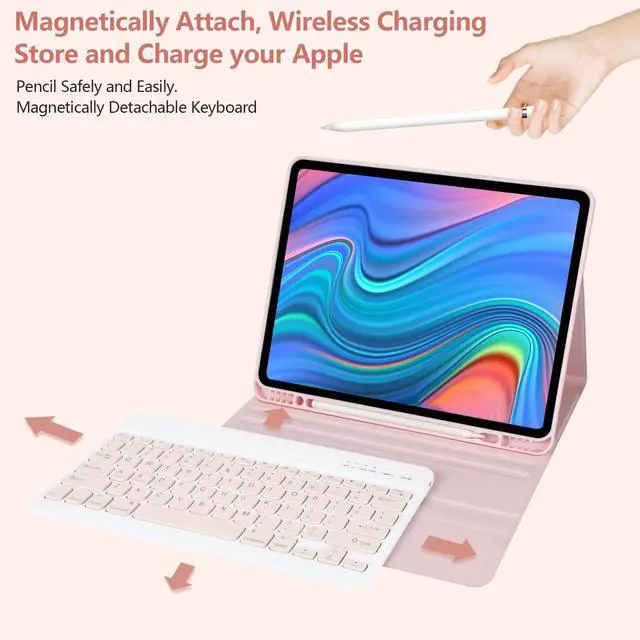 Note: This case keyboard is NOT suitable for the new pro 13 inch M4 2024. ^^ Heat release & for iPads whole body protection: IPads pro 12.9 inch case with keyboard comes with honeycomb grid pattern design is better for heat release and anti-skid. Thoughtful design to effectively extend life of your beloved iPads. Solid keyboard case and wave shock absorbtion give comprehensive protection for your IPads Pro 12.9 Case 6th/5th Generation & for iPads air 13 inch from scratches and damage. ^^ Slim bluetooth wireless keyboard for ipads keyboard: for iPads air 13 inch/for iPads Pro 12.9 inch 6th/5th Generation 2022/2021 keyboard case is ultra-thin, easy to carry, easy to put into a briefcase, handbag or backpack. 12.9 inch ipads pro case with keyboard Detachable bluetooth keyboard combines with our industry-leading keyboard design and adds more spacious scissor-structure keys for a more relaxed and tactile typing experience. ^^ for iPad pro Case Multiple stand angles for comfortable to use: Our keyboard case is compatible with the for iPad Pro, using a flip magnet separate design with built-in three different angles of standing on the bottom of the cover to ensure a comfortable viewing angle - Typing, Reading, Gaming - giving you amazing versatility. Easily adjusts to whatever comfortable angle suits you best. IPads 12.9 pro case Perfect for working, writing, or watching videos at work, school, travel, and home. ^^ Auto Sleep/Wake Function IPad case with keyboard: For iPad air 13 inch & Pro 12.9 inch 6th/5th Generation 2022/2021 keyboard case has auto sleep/wake function, protects and conserves the iPad battery life. Magic keyboard for ipads pro 12.9 will wake up when the case is opened and will go to sleep when it is closed. To achieve the perfect effect of sleep wake-up, please remove the Wireless Bluetooth Keyboard, because the keyboard with iron will prevent the mutual attraction between the magnets.