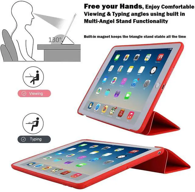 TriFold Stand Feature - It allows you to transform the front cover of your iPad case into a sturdy and adjustable stand with two distinct viewing and typing angles.