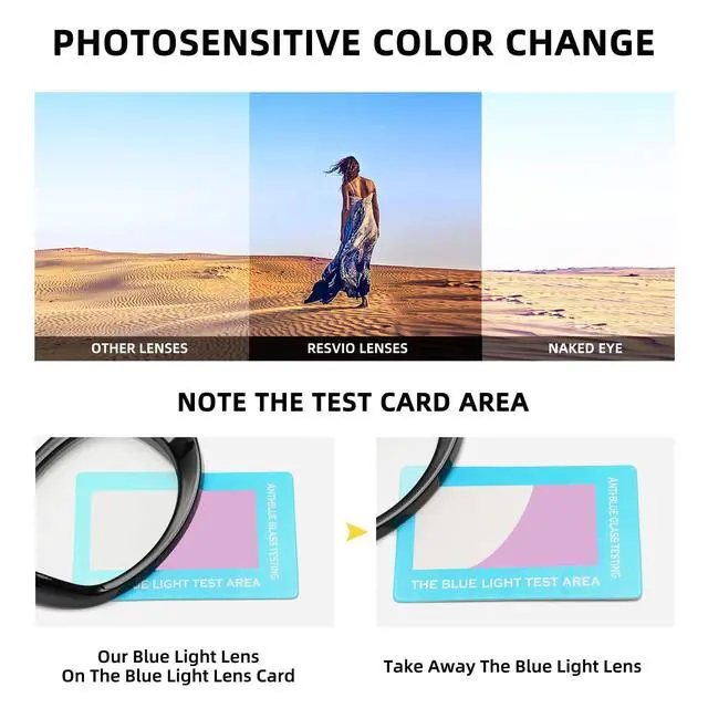 DescriptionProduct Description: Enjoy clear eyes and relieve headaches with blue light barrier glasses and photochromic sunglasses designed for reading, and other outdoor activities.
