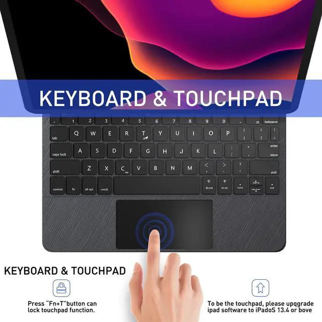 pro 11 2018 (Model: A1980/A2013/A1943/A1979). ^^ SMART TOUCHPAD KEYBOARD- The smart touchpad with multi-gesture control navigates the iPad in a new way. This touchpad will be your second screen support, which allows you to touch the screen without frequently raising your hand. The keyboard case with touchpad makes it easier and more convenient for you to browse the web and edit documents when clicking and sliding.