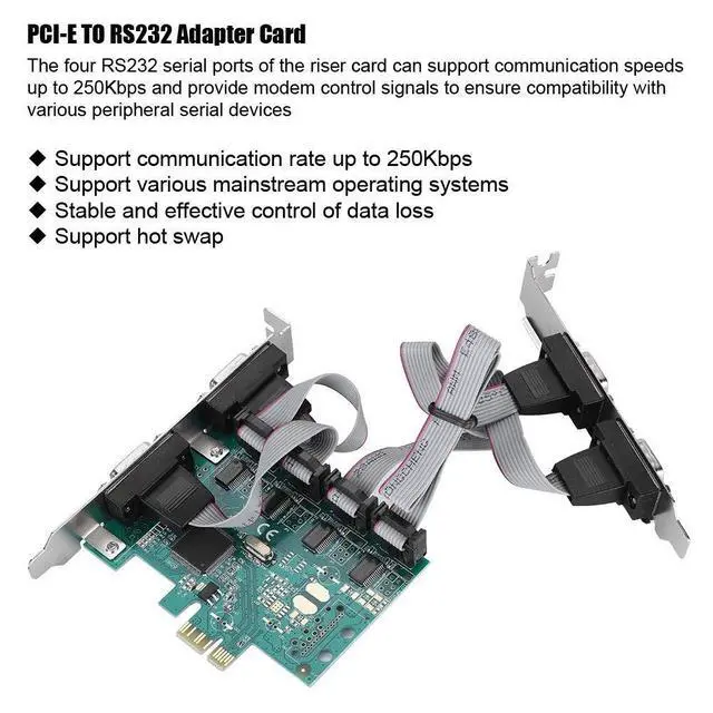 The four RS232 serial ports of the riser card can support communication speeds up to 250Kbps and provide modem control to ensure compatibility with various peripheral serial devices.