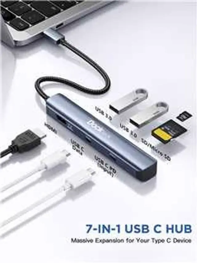 • 7-IN-1 USB-C Hub:The Dockteck USB-C hub offers seamless connectivity with a 100W USB-C power delivery port, a 4K@60Hz HDMI port, 2 USB 3.0 ports (5 Gbps), a USB C Data Port (5 Gbps), and SD/TF card slots. This USB-C to HDMI adapter connects your laptop to external devices, streamlining your workflow with ease.